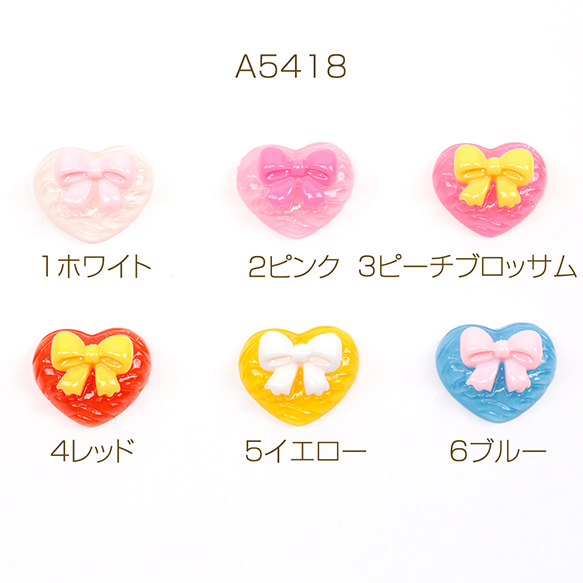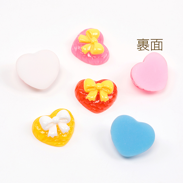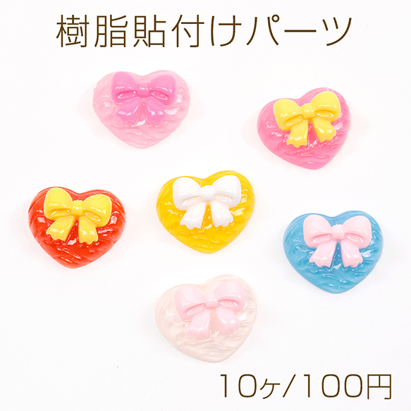 樹脂貼付けパーツ ハートデコパーツ 樹脂カボション リボン装飾 半透明 約15×18mm(10ヶ)