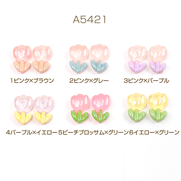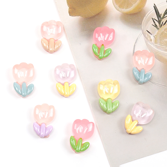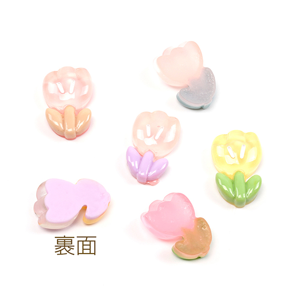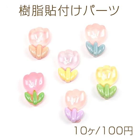 樹脂貼付けパーツ フラワーデコパーツ チューリップモチーフ樹脂カボション 半透明 約12×19mm(10ヶ)