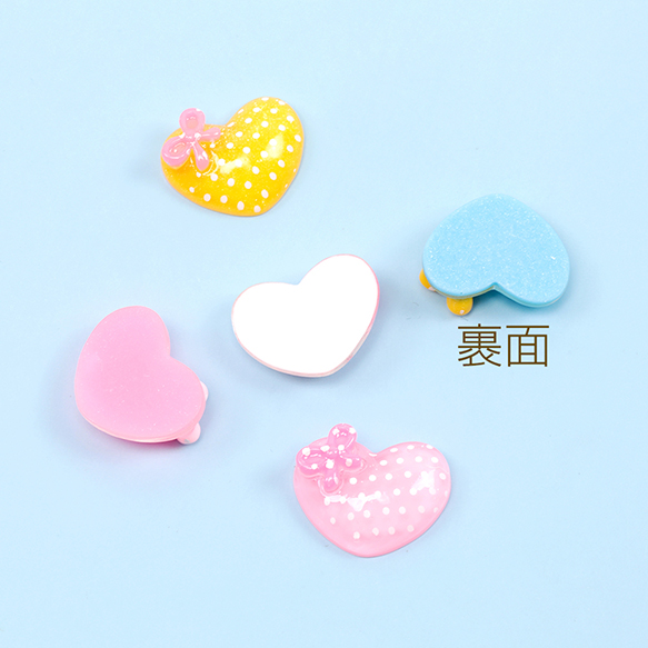 樹脂貼付けパーツ ハートデコパーツ ドットハート樹脂カボション ミニリボン装飾 半透明 約15×20mm(10ヶ)