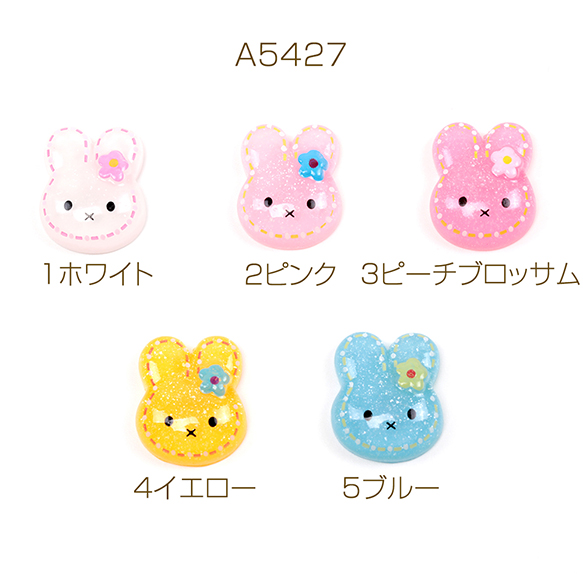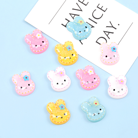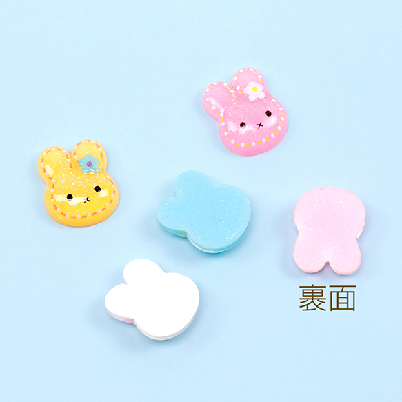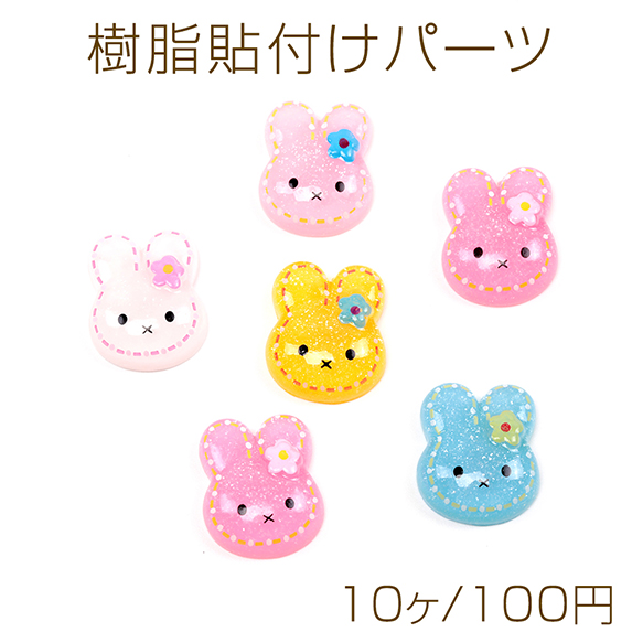 樹脂貼付けパーツ うさぎデコパーツ 兔 ウサギ樹脂カボション 半透明 約15×19mm(10ヶ)