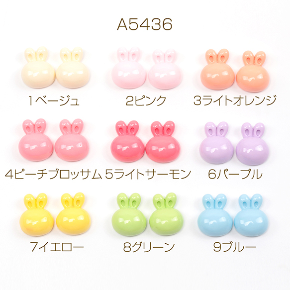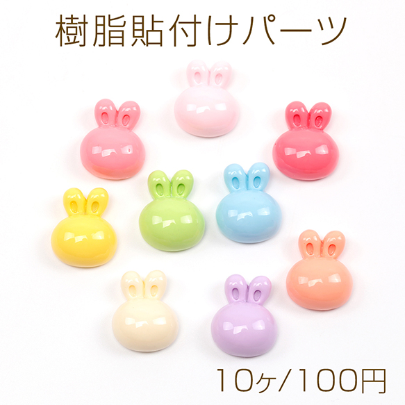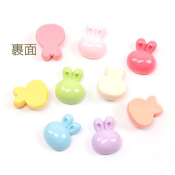樹脂貼付けパーツ うさぎデコパーツ 兔 ウサギモチーフデコパーツ 樹脂カボション パステルカラー 約16×20mm(10ヶ)