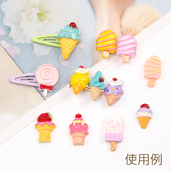 スイーツデコパーツ 樹脂製 ヘアクリップ フォットフレーム貼付けパーツ ミニチュアスイーツパーツ アイスキャンディーモチーフ