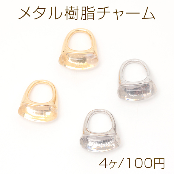 メタル樹脂チャーム クリア樹脂付き メタルチャーム 1カン付き 約12×15mm(4ヶ)