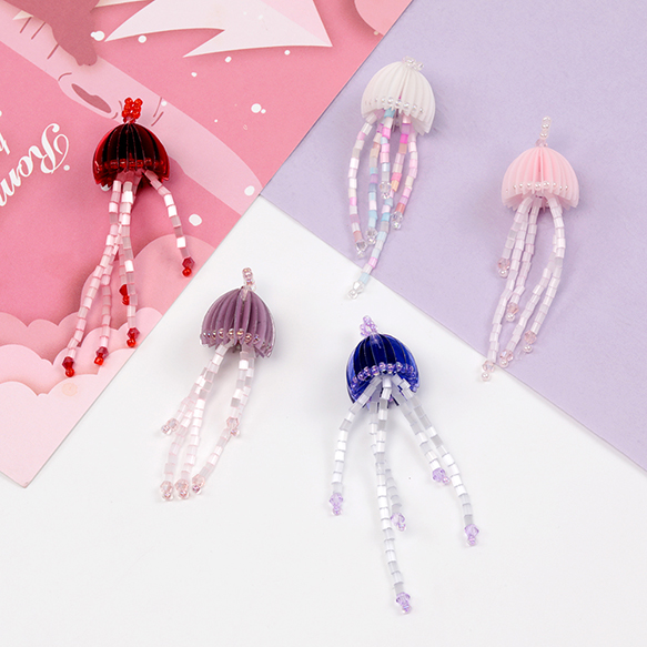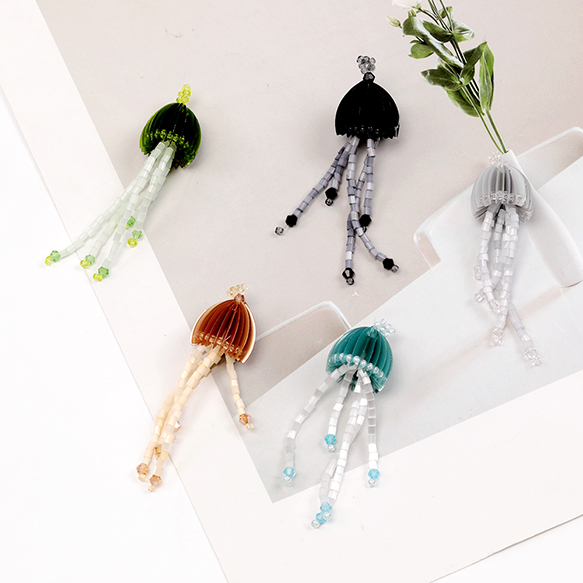 ワイヤービーズパーツ クラゲモチーフ ロングビーズワイヤーチャーム マリンチャーム 約17×55mm(1ヶ)