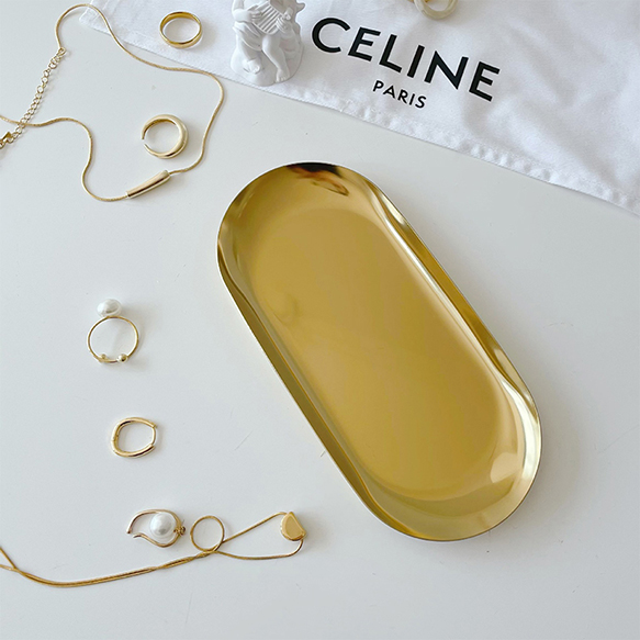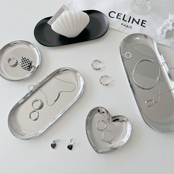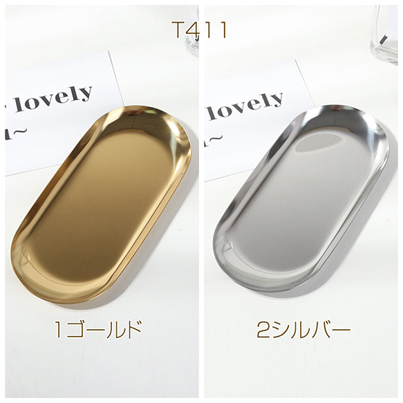 ステンレス製トレー キャッシュトレー ロングオーバル型 ディスプレイトレイ アクセサリートレー ジュエリートレイ 小物置き