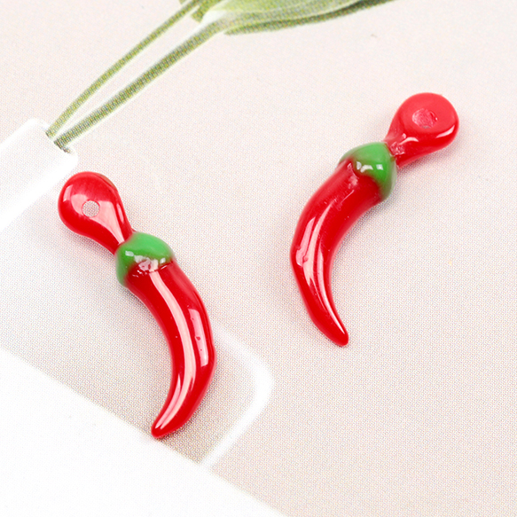 樹脂野菜チャーム ミニチュアフードチャーム 食品サンプルチャーム 唐辛子モチーフ 樹脂製 約4×17mm(6ヶ)