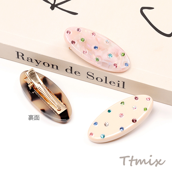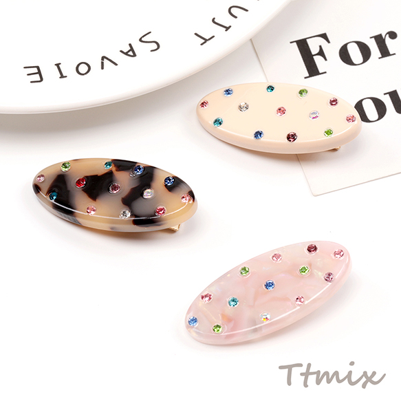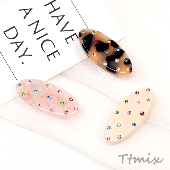 ヘアクリップ カラーストーン付き 前髪クリップ 髪留め ヘアアクセサリー 約1.7×4cm(1ヶ)