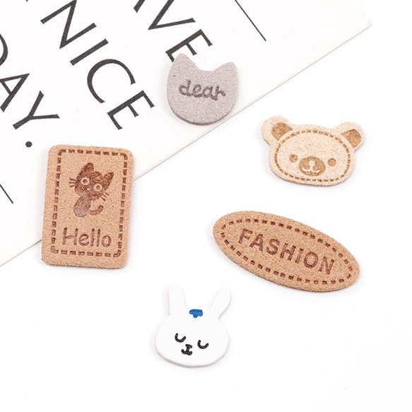 合皮タグ 合皮ワッペン PU合皮タグ 合皮アップリケ バッグ 服飾わっぺん アニマル くま ネコ うさぎ 手芸ワッペン