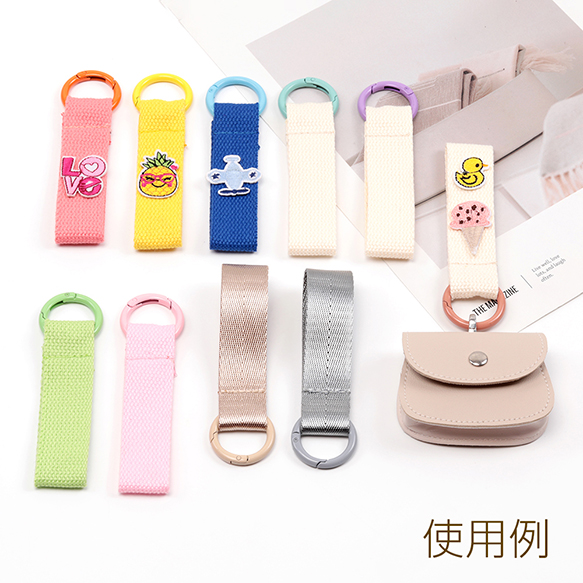 テープキーホルダー 綿 推し活テープキーホルダー制作 コットンテープストラップ ネームタグ ハンドストラップ 丸型カラビナ付き