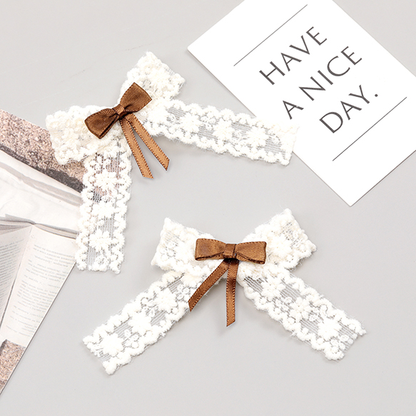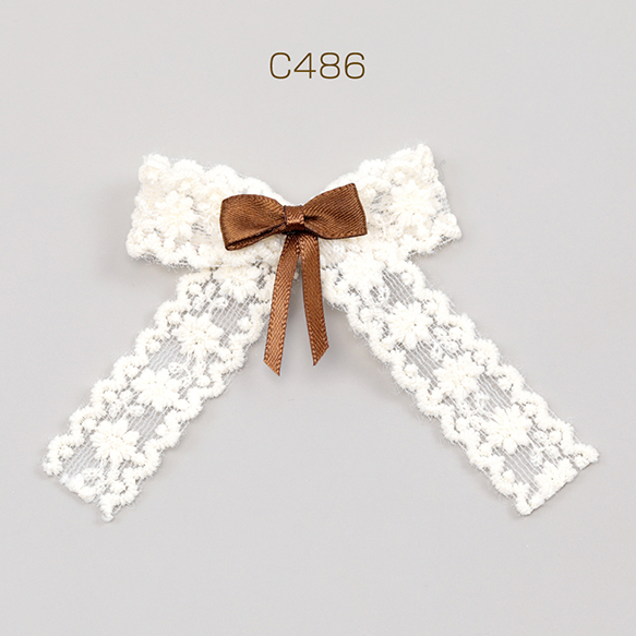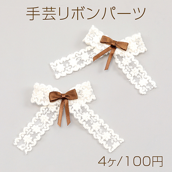 手芸リボンパーツ レースリボン ヘアリボン制作 衣装飾り付けリボン 貼付け可 縫付け可 約5.5×6.5cm(4ヶ)