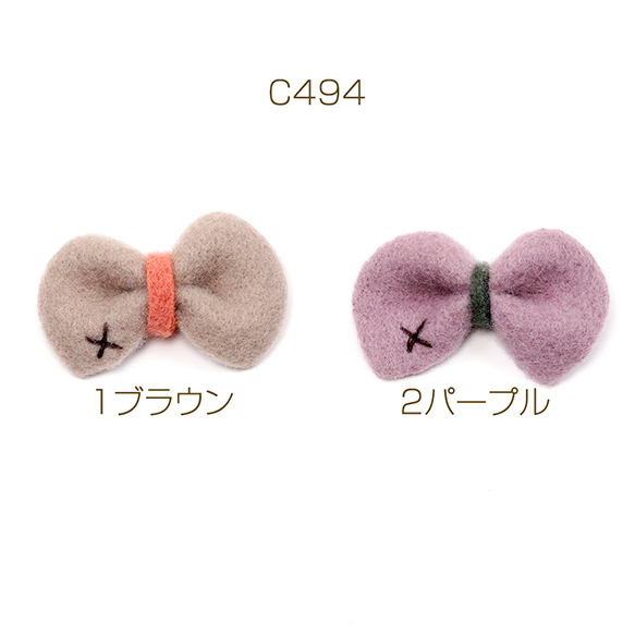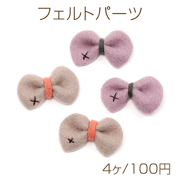 フェルトパーツ リボン ヘアリボン制作 衣装飾り付けリボン 貼付け可 縫付け可 約3×5cm(4ヶ)