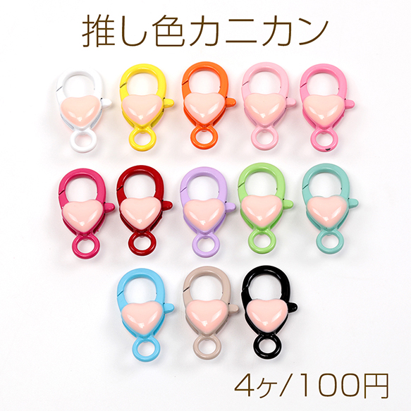 推し色カニカン 推しカラーカニカン ハートフックカン 手作り推し活キーホルダー金具 ストラップ金具 ナスカン 下カン付き 約12×27mm (4ヶ)