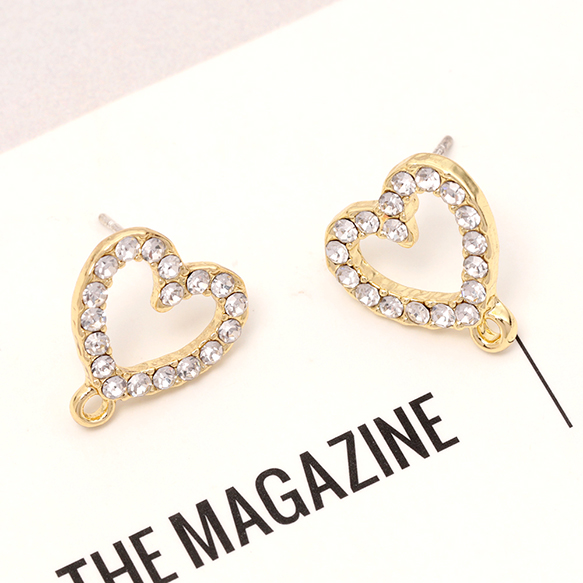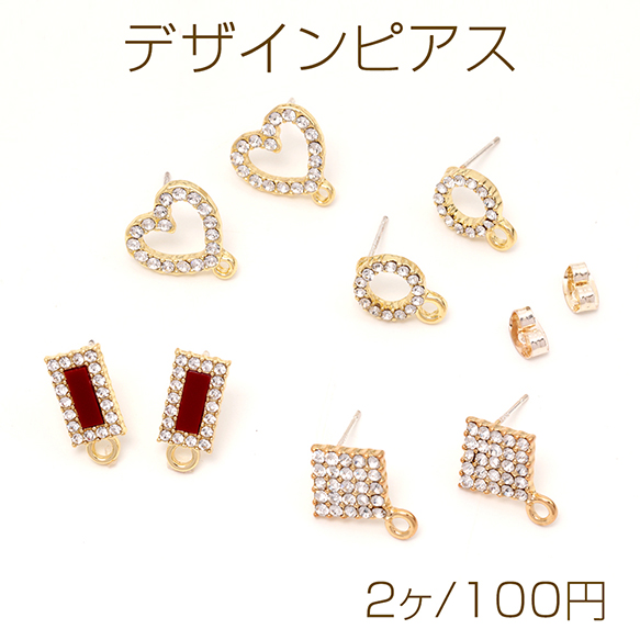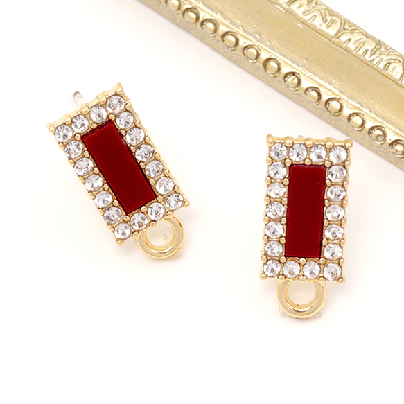 デザインピアス ジルコニアストーン付き 長方形 シルバーポスト キャッチ付き 下カン付き