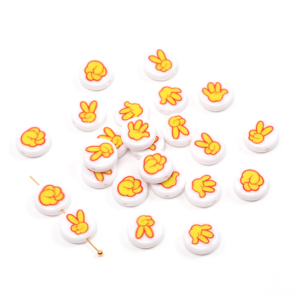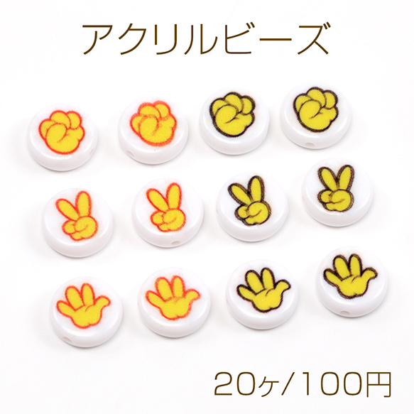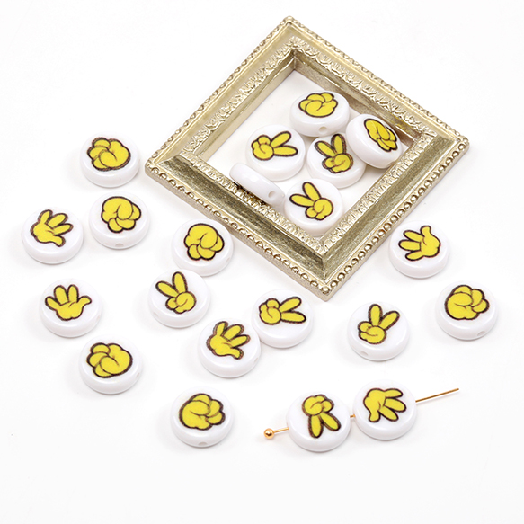 アクリルビーズ ハンドサインビーズ 手作りストラップ キーホルダー スマイルビーズ 穴あり 円形 約11mm (20ヶ)
