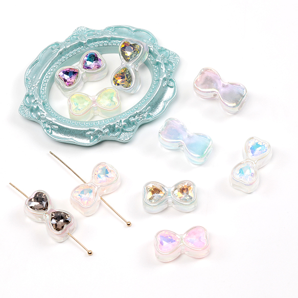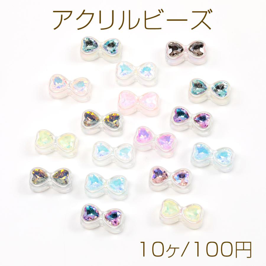 アクリルビーズ リボンモチーフ 手作りストラップ キーホルダー ブレスレット ビーズ アソート 約12×22mm (10ヶ)