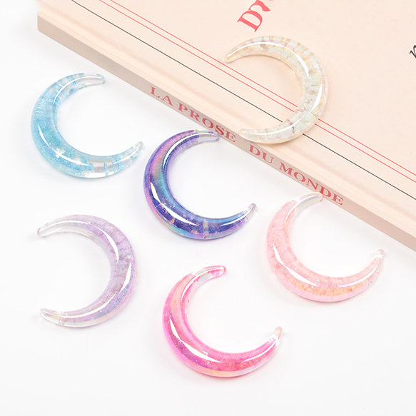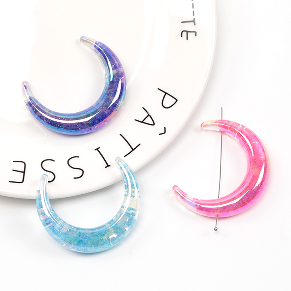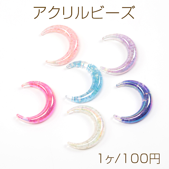 アクリルビーズ 大きめ 蓄光グラデーション月ビーズ ストラップ キーホルダー カスタマペン用ビーズ 約40×46mm (1ヶ)