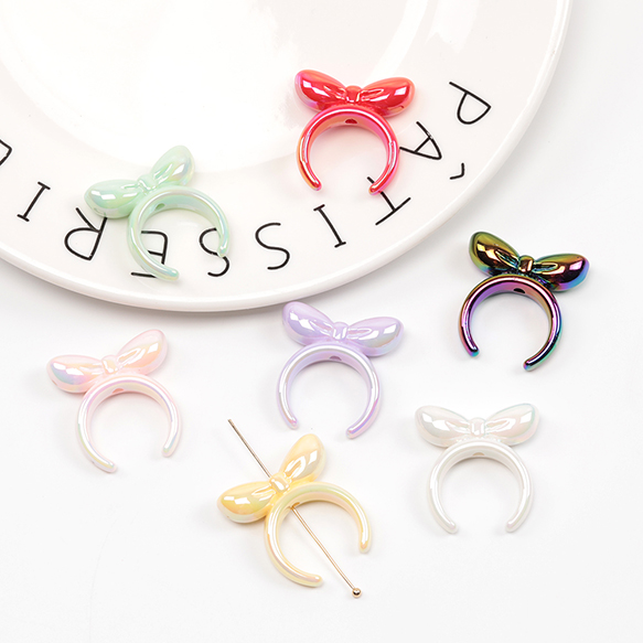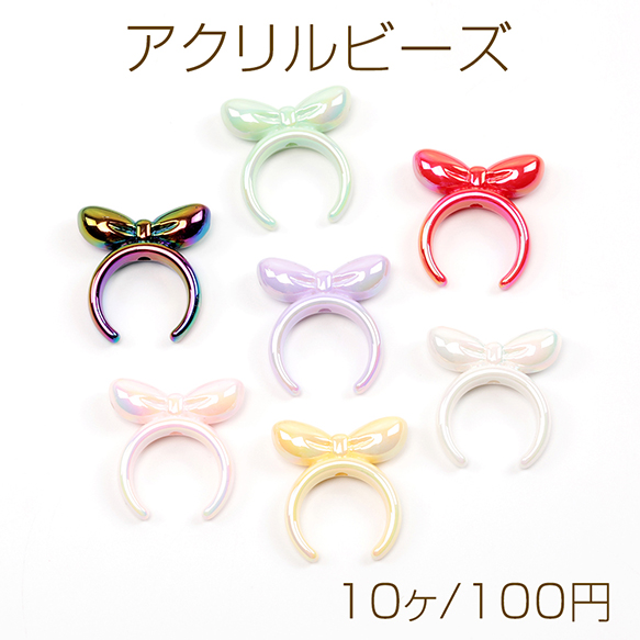 アクリルビーズ カチューシャ型 オーロラカラー ストラップ キーホルダー カスタマペン用ビーズ 約25×27mm (10ヶ)