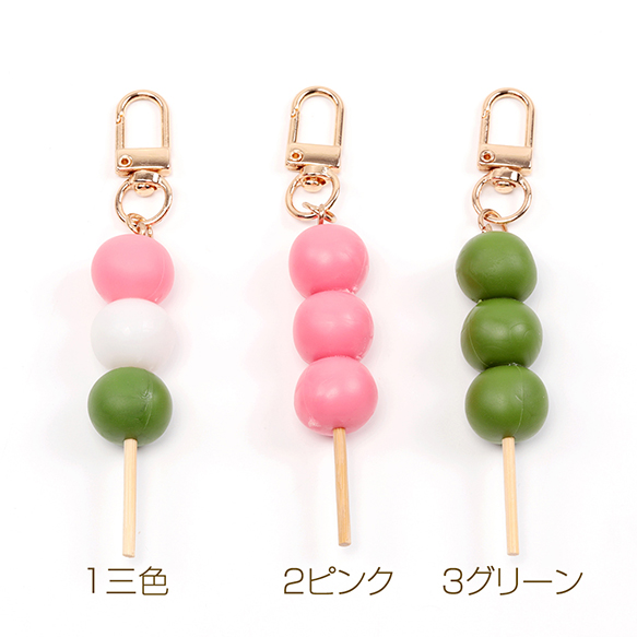 卸売キーホルダー 三色団子 食品サンプルキーホルダー ミニチュアフードストラップ U字型ナスカン付き 約1.8×11cm