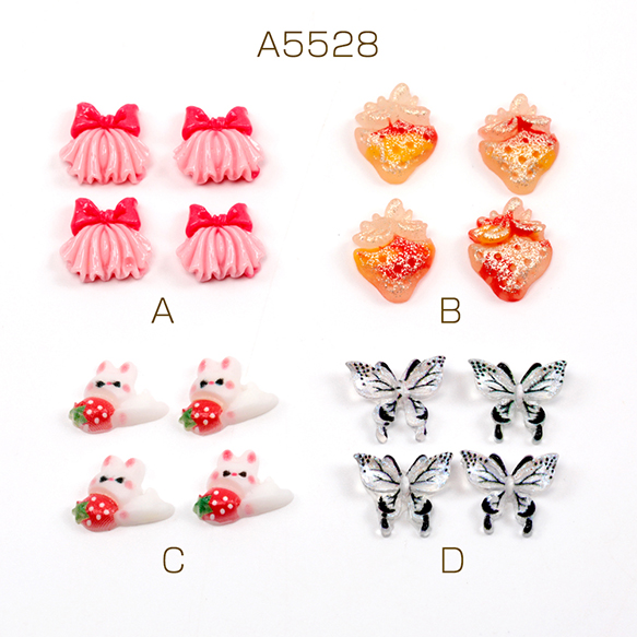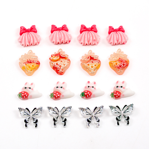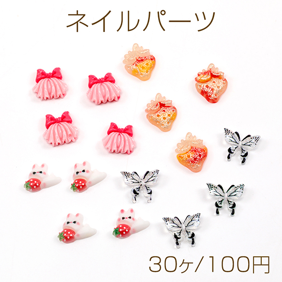 ネイルパーツ リボン 苺 うさぎ 蝶 ジェルネイルデコパーツ 貼付けパーツ UVレジン封入パーツ 樹脂製 (30ヶ)