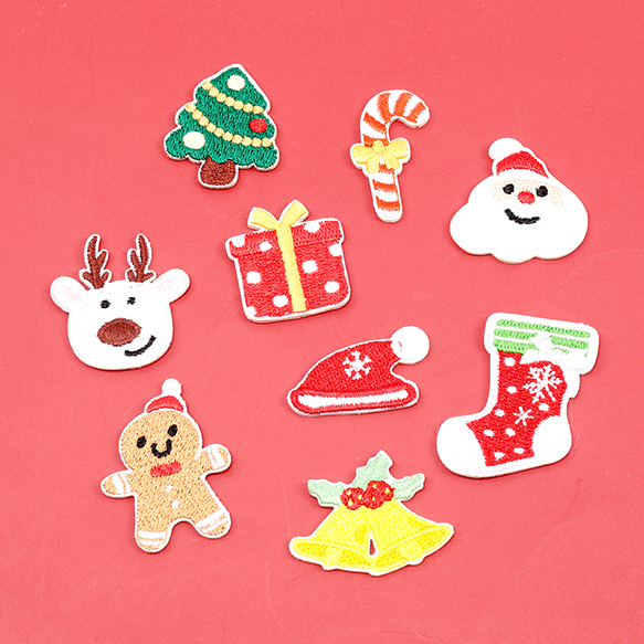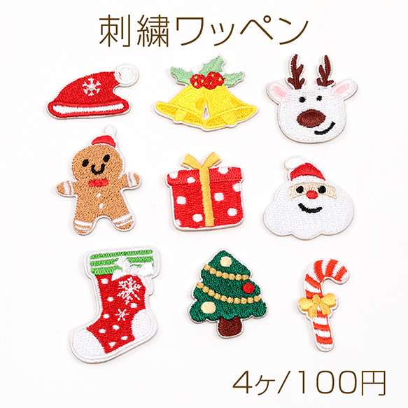刺繍ワッペン クリスマス アップリケ ワッペンシール アイロン接着 テープキーホルダー 衣服 帽子 靴飾り付け (4枚入り)