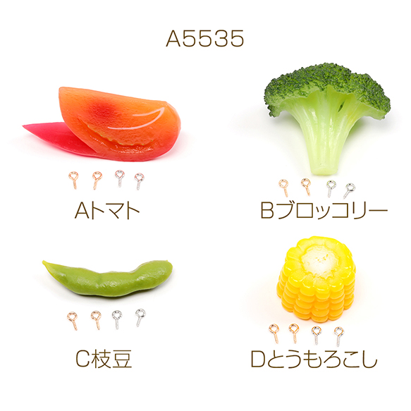 食品サンプル ミニチュアフード 野菜 ヘアクリップ貼付け キーホルダー制作 (おまけヒートン4つ付き)