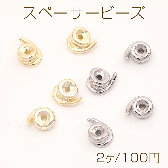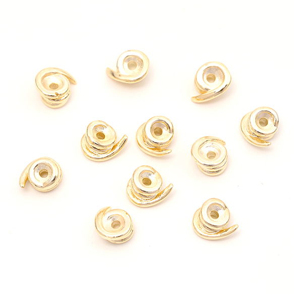スペーサービーズ ブレスレット制作 ロンデルビーズ 螺旋型 14Kゴールドメッキ 色落ちしにくい 約7×8mm (2ヶ)