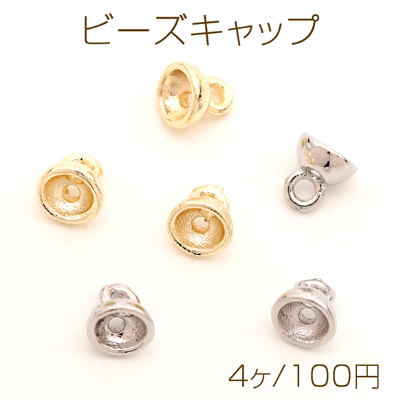 ビーズキャップ パールビーズキャップ ガラスドームキャップ 蓋 14Kゴールドメッキ 色落ちしにくい 丸型 カン付き 約4.5mm (4ヶ)