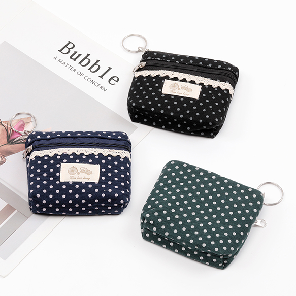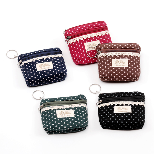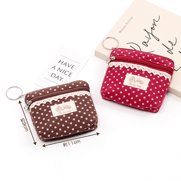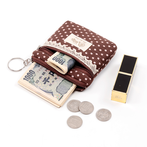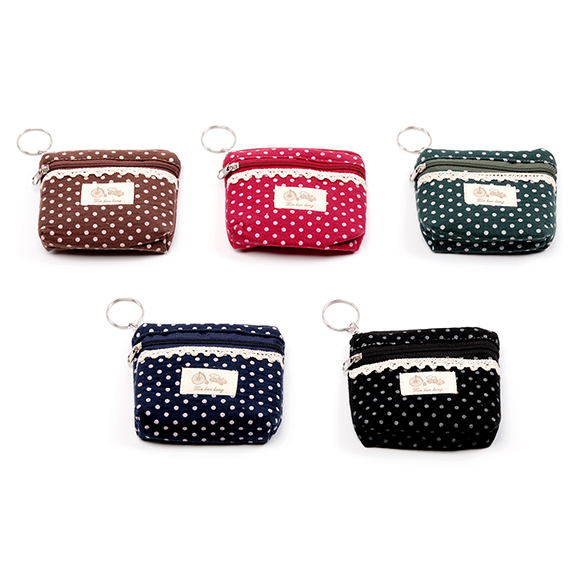 小銭入れ 布製 ミニポーチ ミニ財布 コイン財布 カードも入る コンパクトウォレット ファスナー付き 二重カン付き ランダム