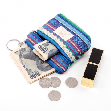 小銭入れ 布製 ミニポーチ ミニ財布 コイン財布 カードも入る コンパクトウォレット ファスナー付き 二重カン付き ランダム
