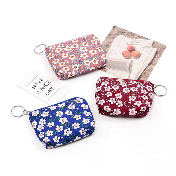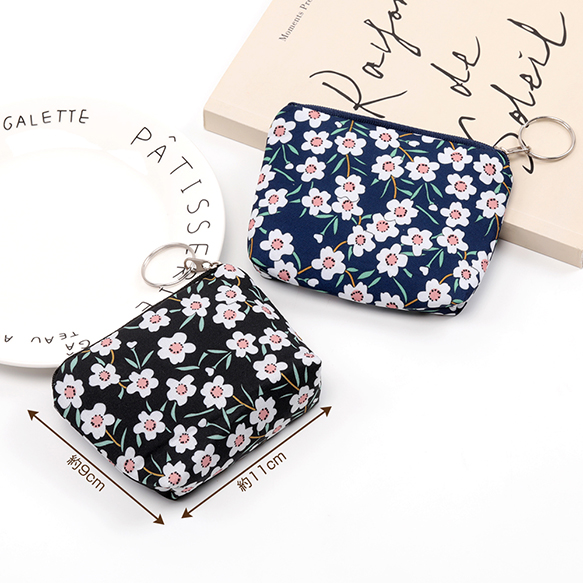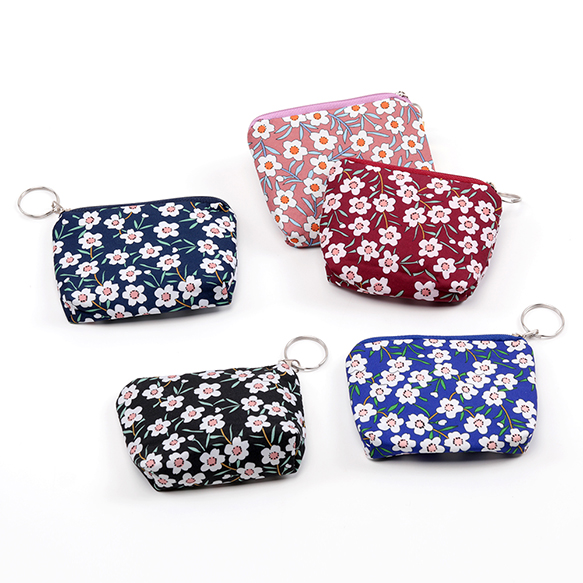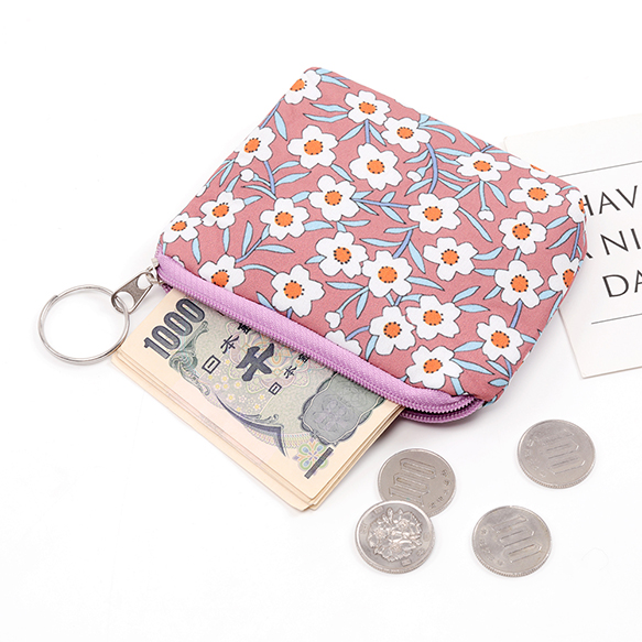小銭入れ 布製 ミニポーチ ミニ財布 コイン財布 カードも入る コンパクトウォレット ファスナー付き 二重カン付き ランダム