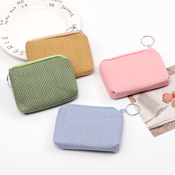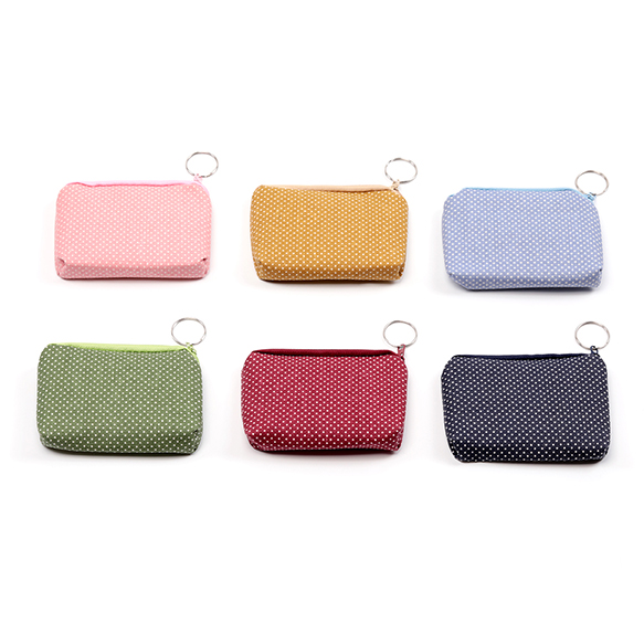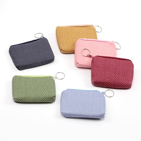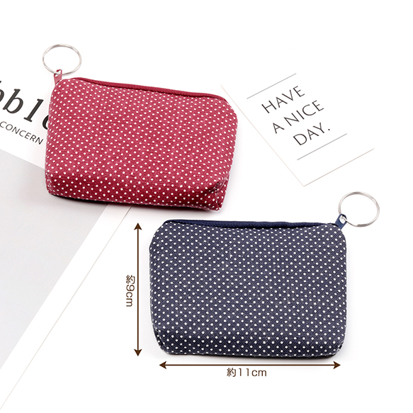 小銭入れ 布製 ミニポーチ ミニ財布 コイン財布 カードも入る コンパクトウォレット ファスナー付き 二重カン付き ランダム