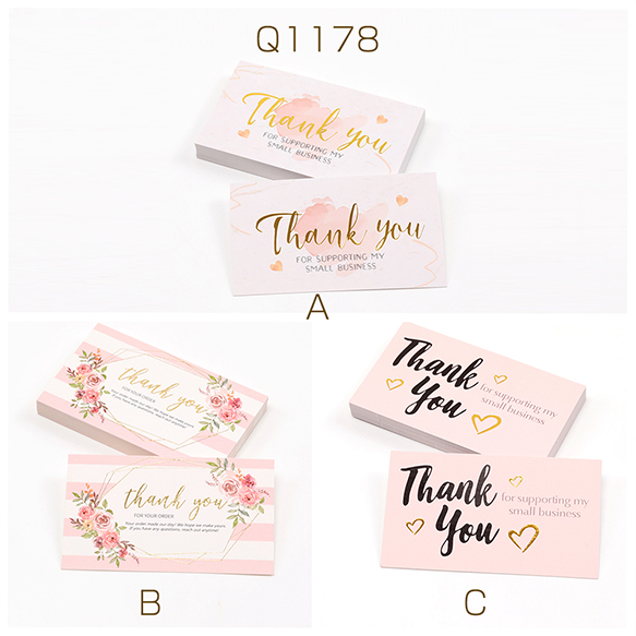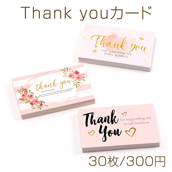 Thank youカード 長方形デザイン サンキューカード ショップカード メッセージカード 約5.4×9cm (30枚)