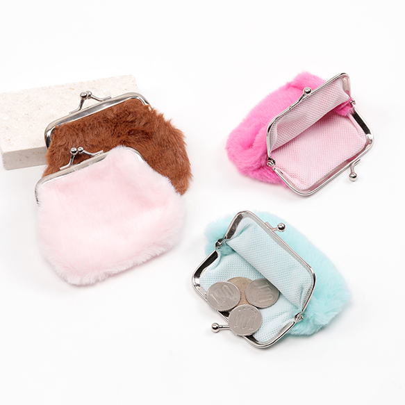 がま口ポーチ もふもふフェイクファーポーチ ミニポーチ ミニ財布 モコモコポーチ 小物入れ ランダム発送 (1ヶ)