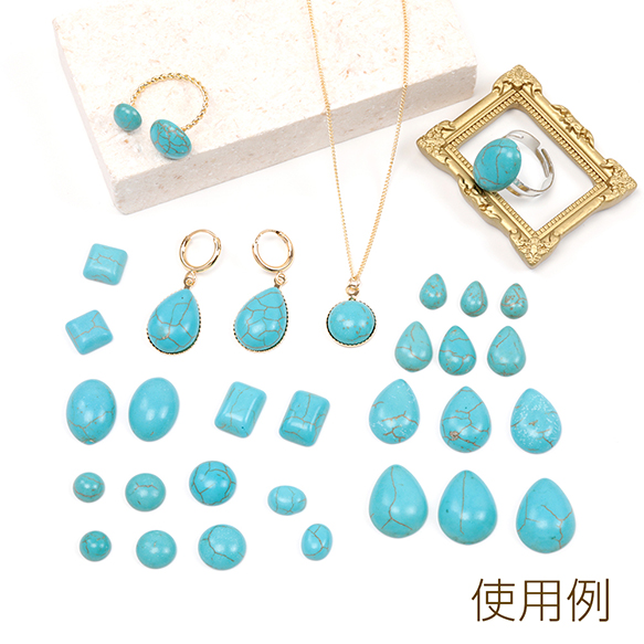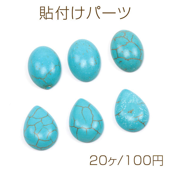 ターコイズ貼付けパーツ ターコイズ半円デコパーツ ターコイズラウンドカボション 天然石貼付けパーツ (20ヶ)