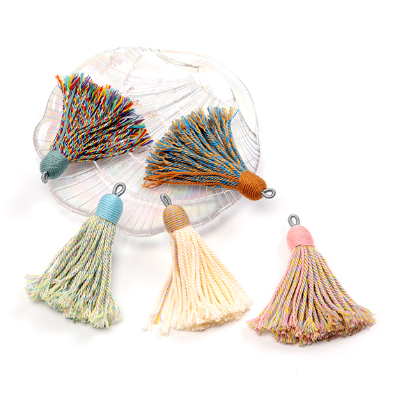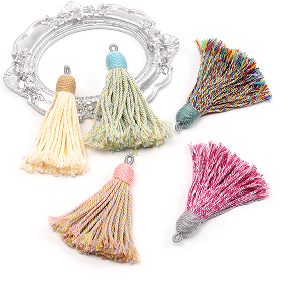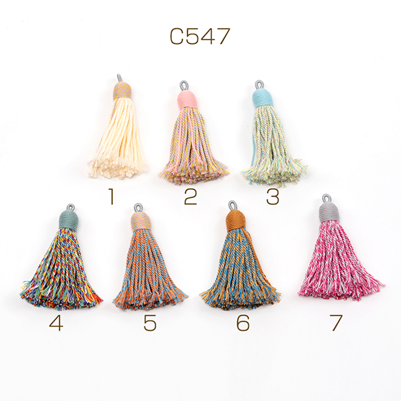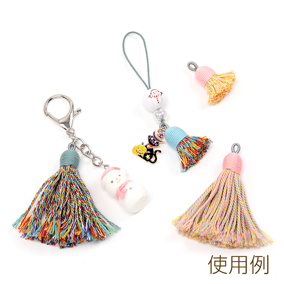 タッセルチャーム 刺繍糸タッセル ミニタッセルパーツ ピアス イヤリング キーホルダー バッグチャーム 長さ約6cm (2ヶ)