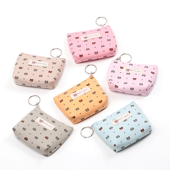 小銭入れ 布製 ミニポーチ ミニコイン財布 ファスナー付き キーリング付き (1個) ランダム発送 (1個) ランダム発送