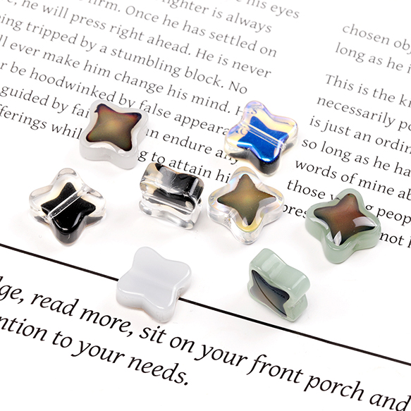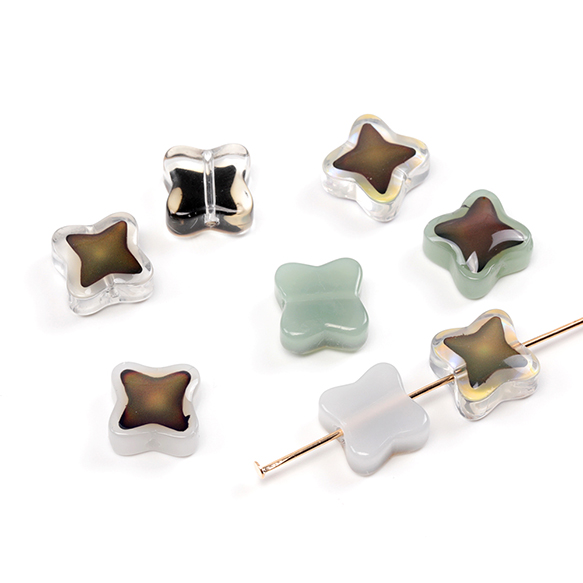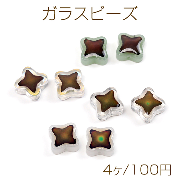 ガラスビーズ 温度で色変化 ミラージュ―ビーズ スクエア型 縦穴 約11mm (4ヶ)