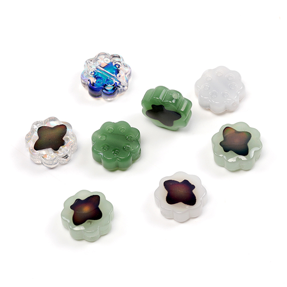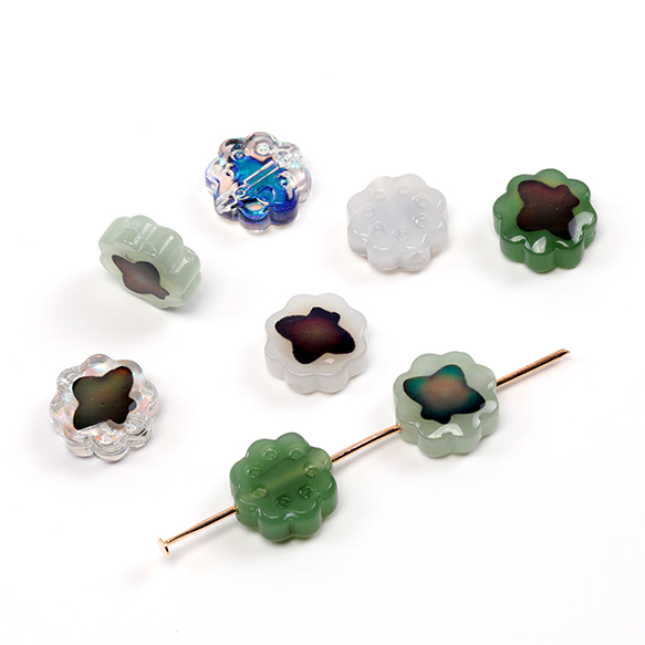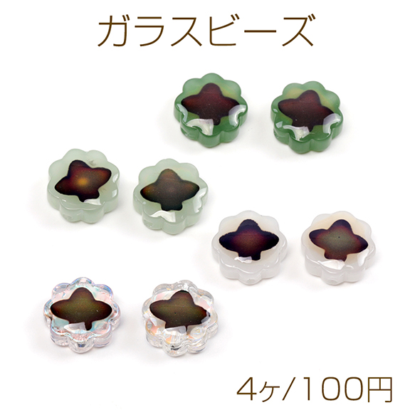 ガラスビーズ 温度で色変化 ミラージュ―ビーズ フラワー型 縦穴 約12mm (4ヶ)
