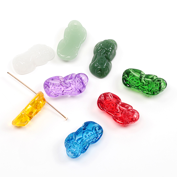 ガラスチャーム 貔貅モチーフ ガラスペンダントトップ 立体ひきゅう型 縦穴 約15.5×30mm (10ヶ)