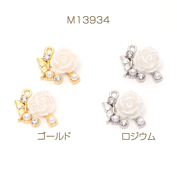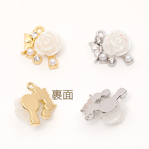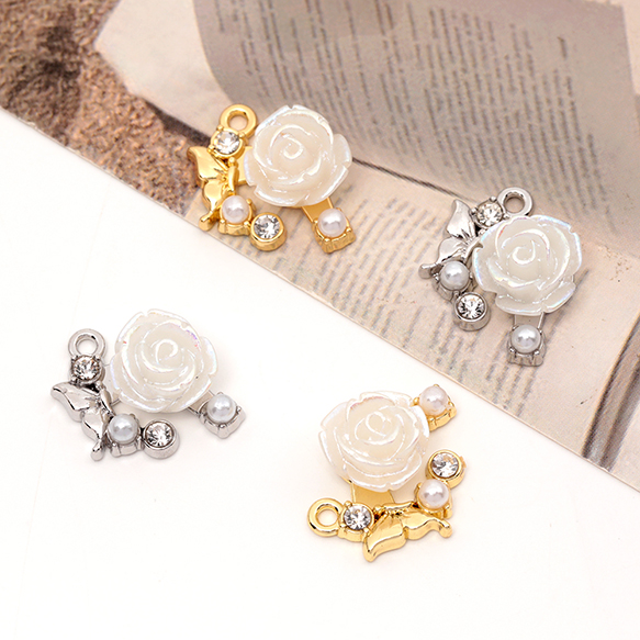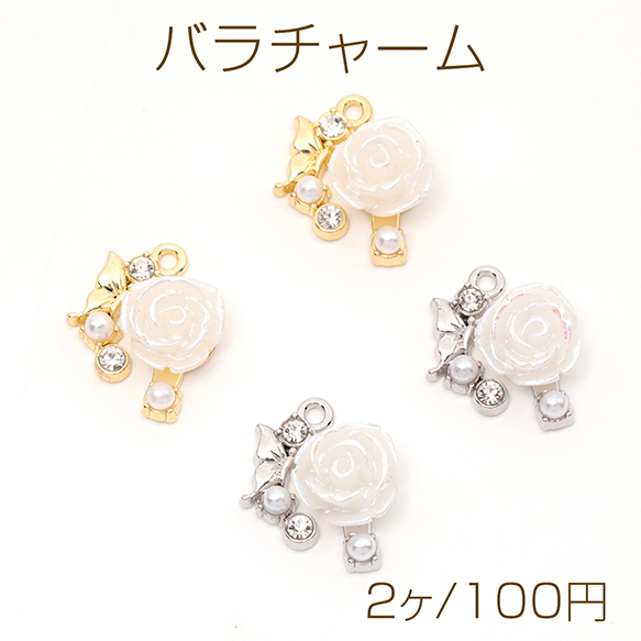 バラチャーム 薔薇チャーム ばらチャーム ストーン装飾 カン付き 約14×19mm (2ヶ)