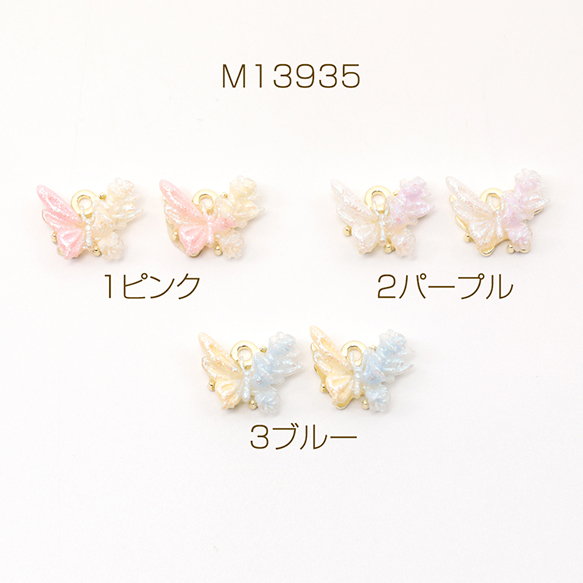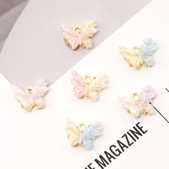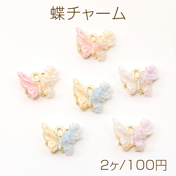 蝶チャーム ツートンカラー 蝶モチーフチャーム カン付き 約10×13mm (2ヶ)