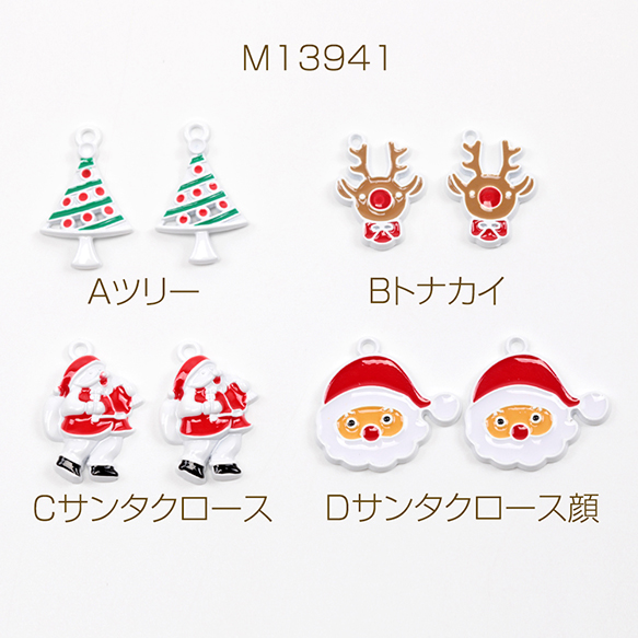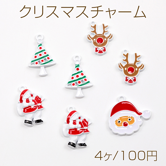 クリスマスチャーム ツリーチャーム トナカイチャーム サンタクロースチャーム エポチャーム カン付き (4ヶ)