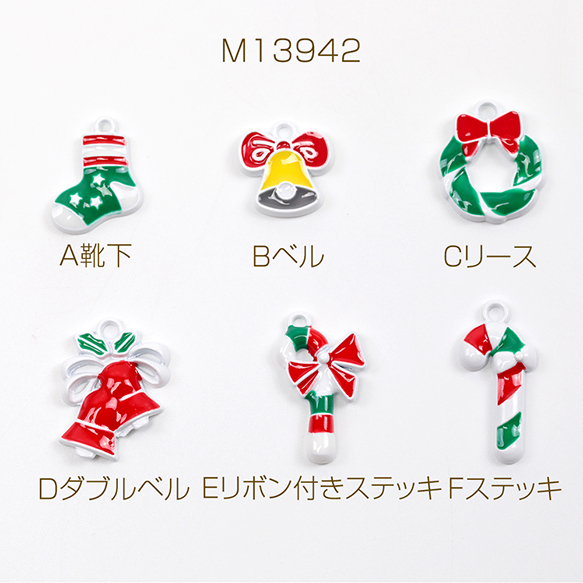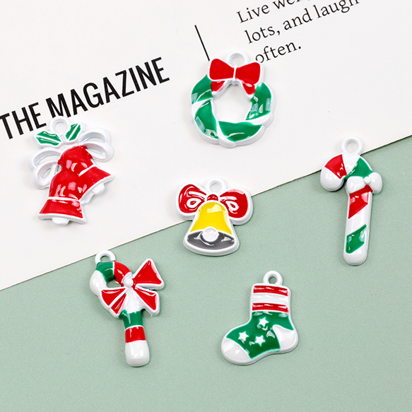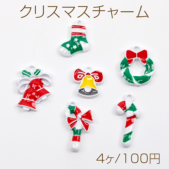 クリスマスチャーム 靴下チャーム ベルチャーム リースチャーム ステッキチャーム クリスマスエポチャーム カン付き (4ヶ)