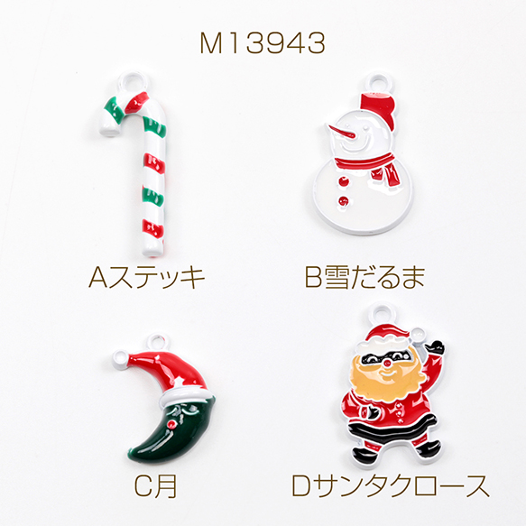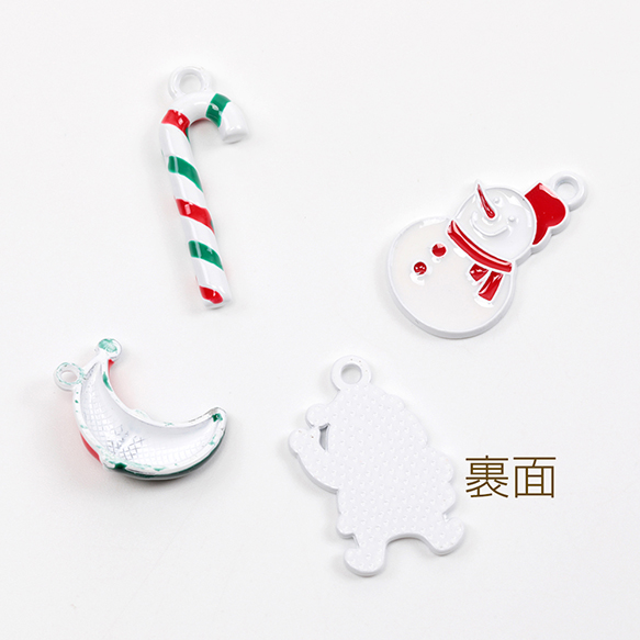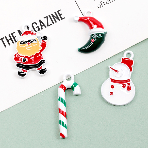 クリスマスチャーム ステッキチャーム 雪だるまチャーム 帽子チャーム 月チャーム サンタクロースチャーム カン付き (4ヶ)