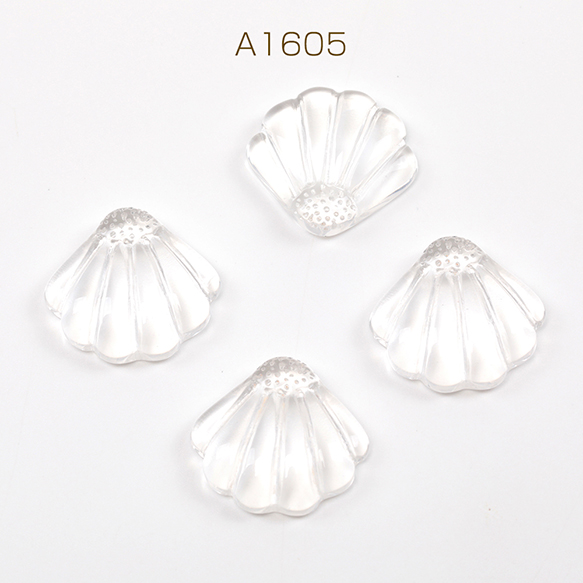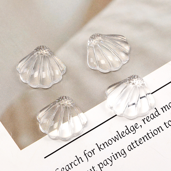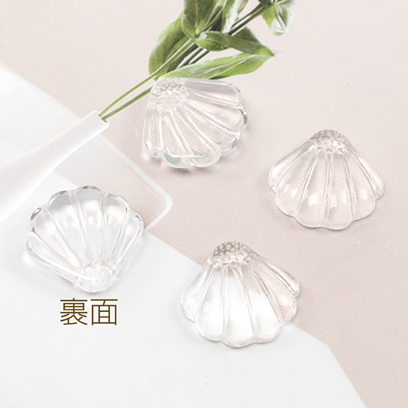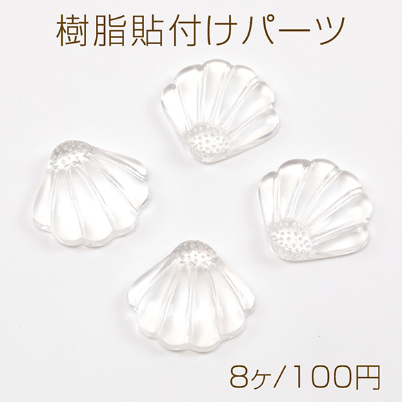 樹脂貼付けパーツ 貝がらモチーフ クリア樹脂貼付けパーツ 透明シエルデコパーツ 約18×20mm (8ヶ)