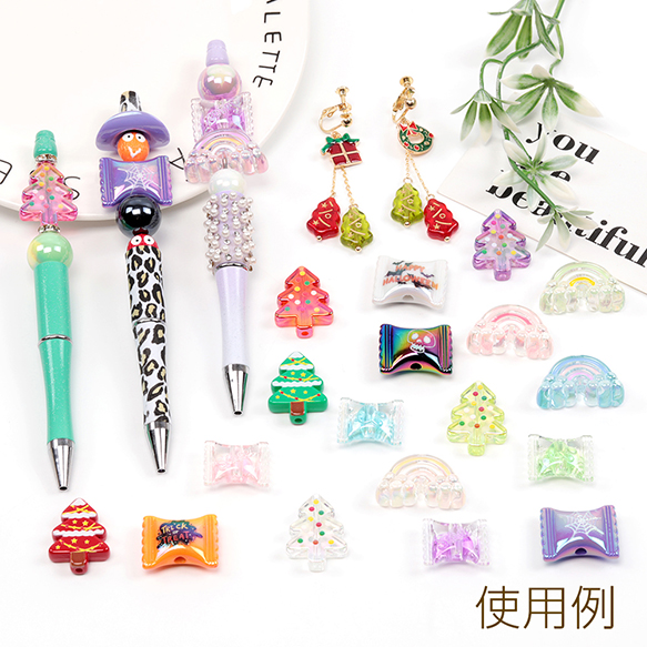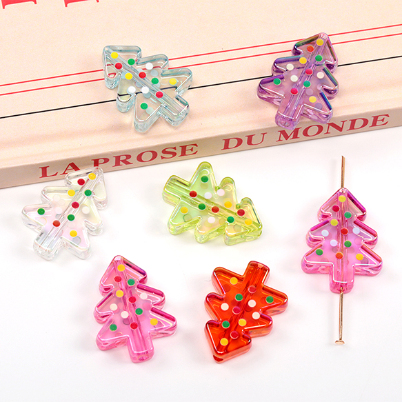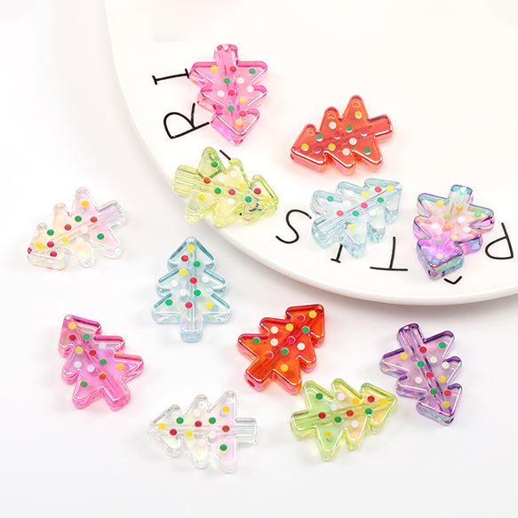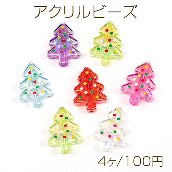 アクリルビーズ クリスマスツリーモチーフ キーホルダー ストラップ制作におすすめ 色ランダム 縦穴 ランダム発送(4ヶ)