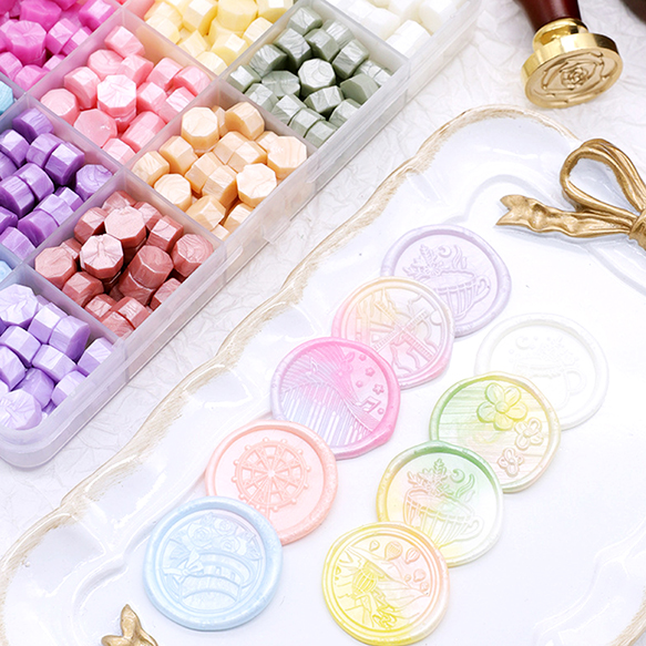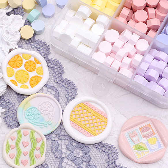 シーリングワックス ラウンドカット型シーリングワックスビーズ 封ろう スタンプ用蝋 ケース入り 10色アソート (約200粒)