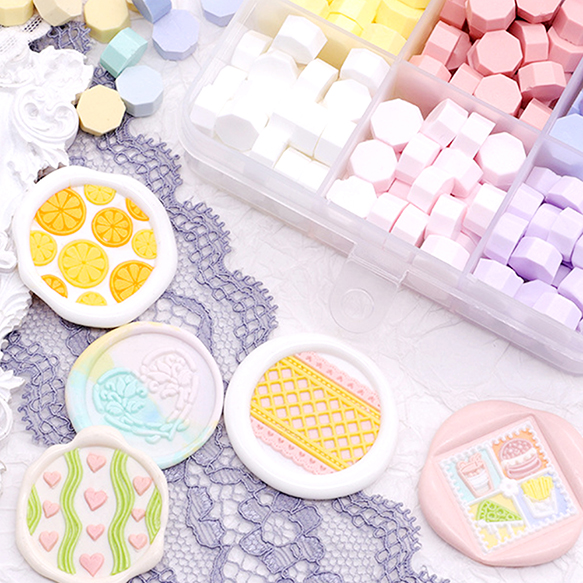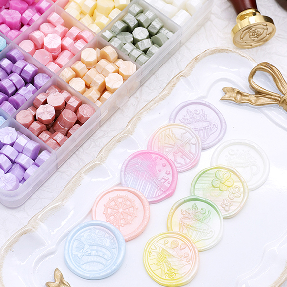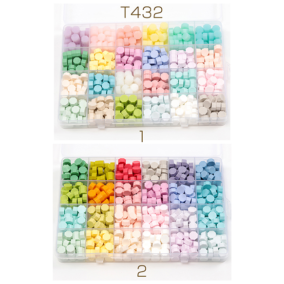 シーリングワックス ラウンドカット型シーリングワックスビーズ 封ろう スタンプ用蝋 ケース入り 24色アソート (約600粒)