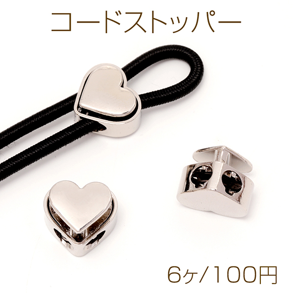 コードストッパー 紐長さ調節パーツ 靴紐ストッパー 紐止め 巾着袋やパーカーフードの紐抜け防止 ハート型 合金製 (6ヶ)