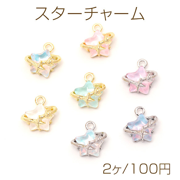 スターチャーム ガラススターチャーム 立体星チャーム 1カン付き 約13×13mm (2ヶ)